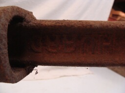 Particularité physique : Long age : 135 l travail : 40 L Soc: 60 Diam : 26. Mancherons en bois, fabrication artisanale à partir d'un age Huard (Marque "Huard NROC" sur l'age)