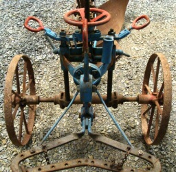 Particularité physique : avant-train repeint en bleu, jaune et rouge. Avec coutres et rasettes. 2 boulons de fixation du soc.