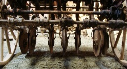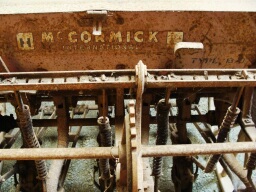 Particularité physique : 7 rangs - l trav=105cm. Brancards métalliques, roues en bois avec bandage métallique. Type BAJ. Socs constitués de deux disques.