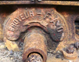 Particularité physique : Couleur rouge. Volant d'inertie: diam=120cm. Poulie en bois pour entrainement: diam=100cm