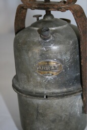 Particularité physique : Lampe à carbure dite de mine / acéthylène avec inscription ARRAS sur le devant de la lampe