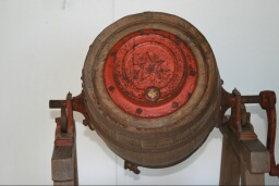 Particularité physique : Moulin à beurre ou baratte rotative à manivelle, une forme d'étoile décorée sous la cuve