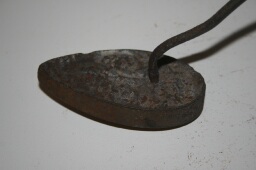 Genre/Carac. phys. : Petit fer à repasser, muni d'un manche ; L: 36cm