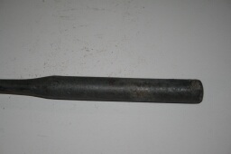 Genre/Carac. phys. : Tube cylindrique en acier avec poignée en bois dans son prolongement ; L: 34 cm, diam.: 1,8 cm