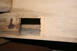 Trémie en bois, on trouve un cercle en fer pour la fixation du sac à sa base. Il y a une trappe glissière pour le débit et deux trappes pour nettoyer et accéder au boisseau. Cet ensachoir est relié à la première meule de pierre de l'étage supérieur. Sert à mettre la farine en sac.