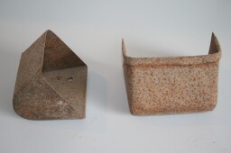 Il s'agit de 2 godets élévateurs de taille différentes, on retrouve de chaque côté des trous permettant de les fixer sur la courroie. Ils servent à transporter le blé aux étages supérieurs.